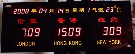 3、              本屏的時間顯示功能與大堂世界時間地圖屏相似,在分成幾塊安裝情況下,也能保證各城市時間同步運(yùn)行。