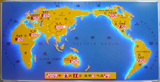 本系列世界時間地圖屏的功能與適用場合類似于大堂世界時間地圖屏,其特點是所有的地圖板塊固定在一塊完整的亞克力底板上,然后將整塊世界時間地圖屏掛到墻上即可,安裝甚為簡單,用戶可以自行懸掛,無需廠家派人協(xié)助。