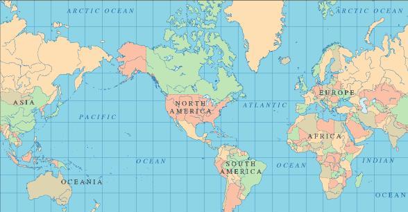 以美洲為中心的世界地圖